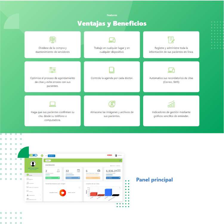 Sistema web cloud que automatiza los procesos en su clínica, haciéndole olvidar de servidores en sus oficinas, pagando por lo que necesita y con información en tiempo real.