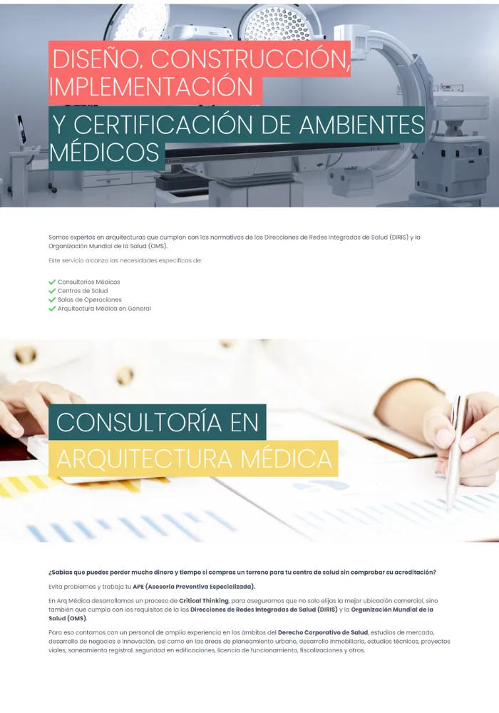 Líderes en arquitectura médica en el Perú, con demostrada experiencia en crear espacios médicos especializados y salas de operaciones, cumpliendo con las regulaciones de DIRIS y la OMS.