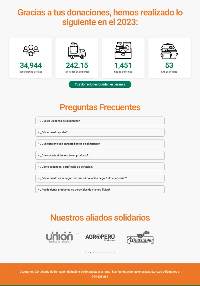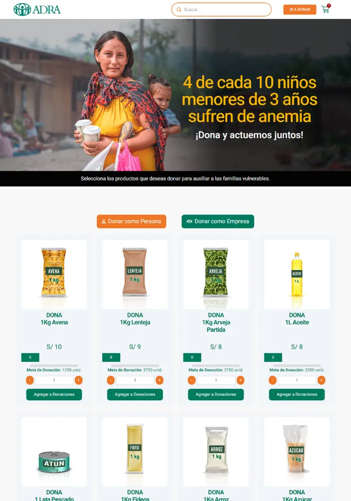 Banco de Alimentos ADRA es un espacio virtual diseñado para almacenar donaciones económicas, destinadas a brindar alimento a las familias más vulnerables.