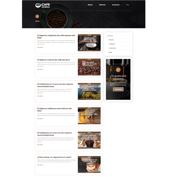 Café Espresso nos ha pedido diseñar completamente su sitio web con un nuevo enfoque y con las últimas tecnologías.