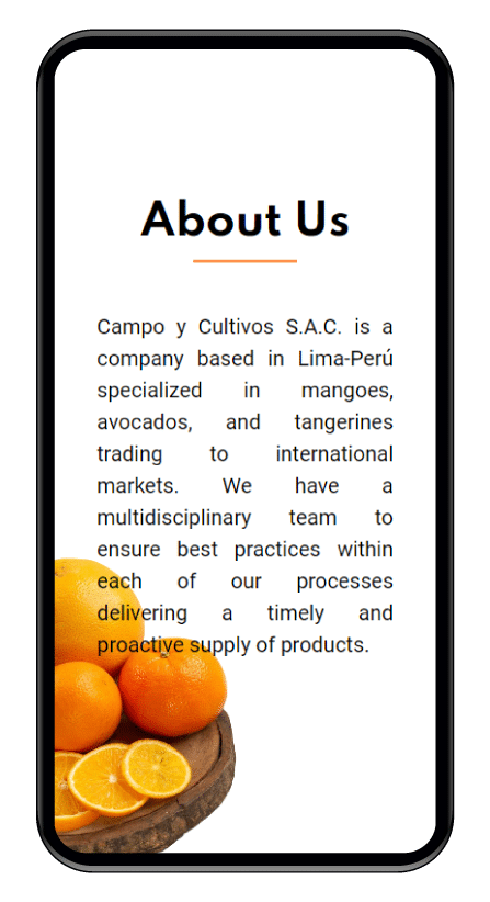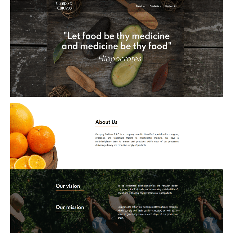 Empresa con sede en Lima-Perú especializada en la comercialización de mangos, aguacates y mandarinas a los mercados internacionales.
