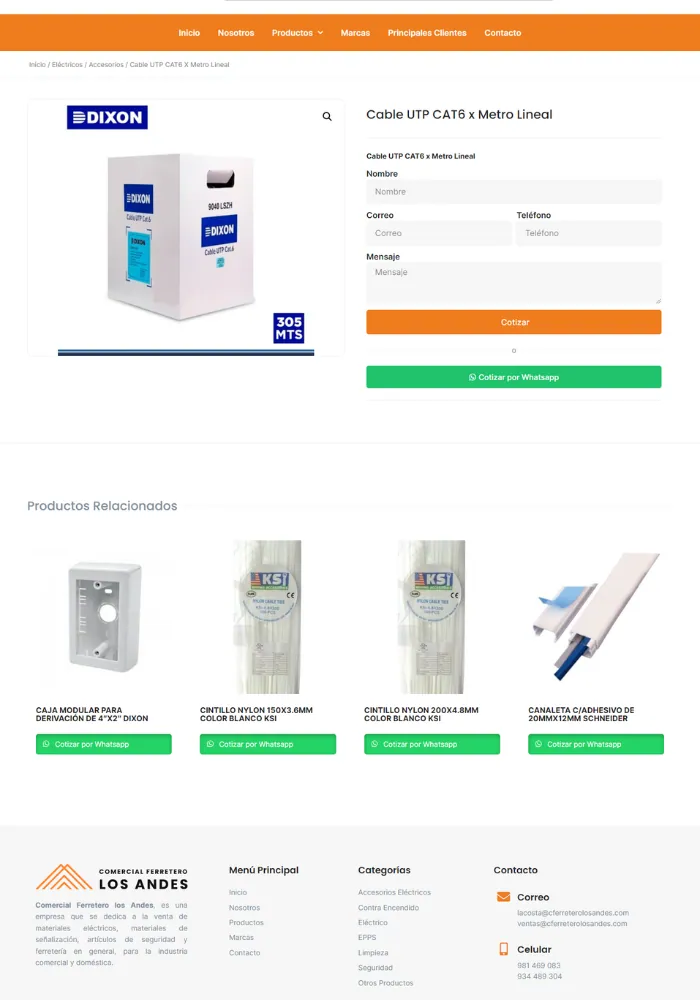 Cuenta con módulo de whatsapp, visible en todas las páginas, para facilitar el contacto de sus clientes con un solo botón.