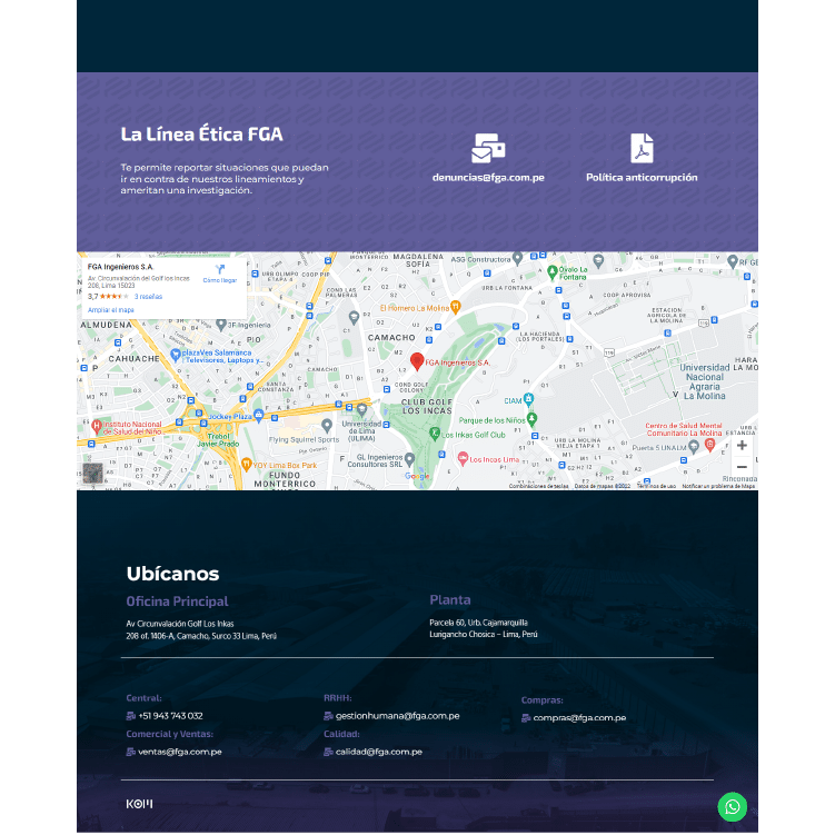 Cuenta con módulo de whatsapp, visible en todas las páginas, para facilitar el contacto de sus clientes con un solo botón.