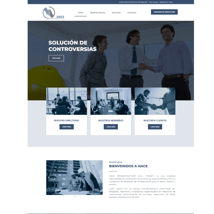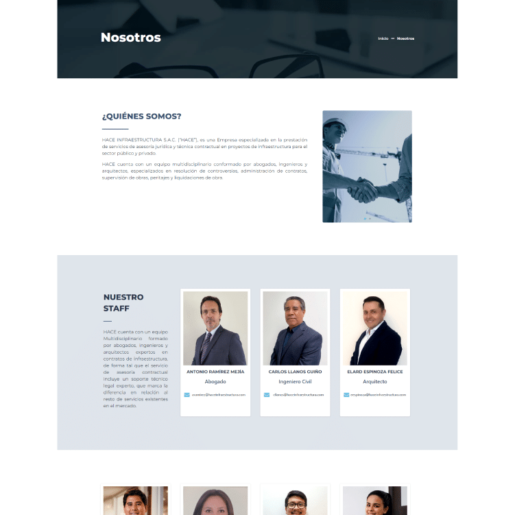Hace Infraestructura S.A.C. nos ha pedido diseñar completamente su sitio web con un nuevo enfoque y con las últimas tecnologías.