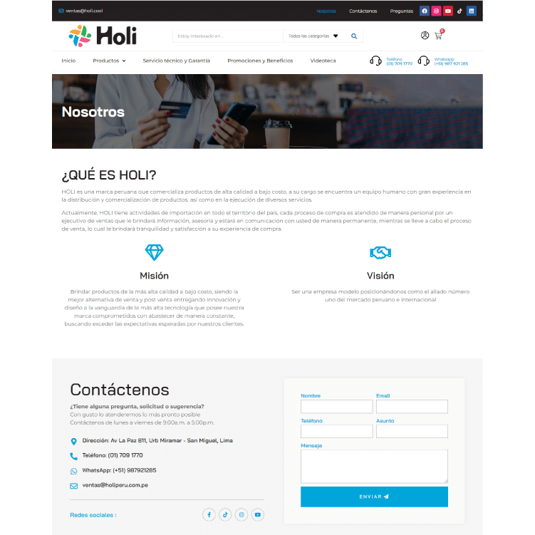 HOLI es una marca peruana que comercializa productos de alta calidad a bajo costo, a su cargo se encuentra un equipo humano con gran experiencia en la distribución y comercialización de productos.