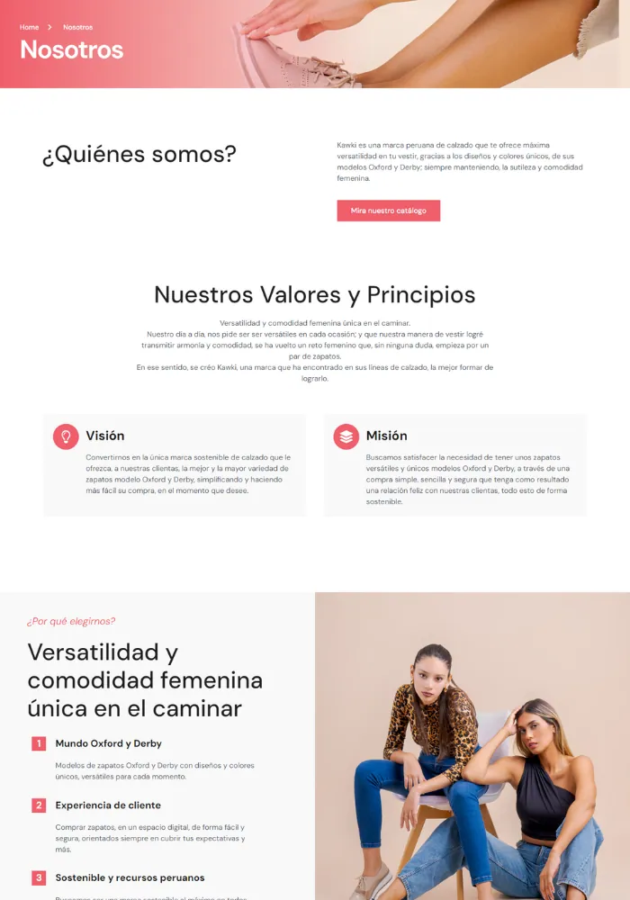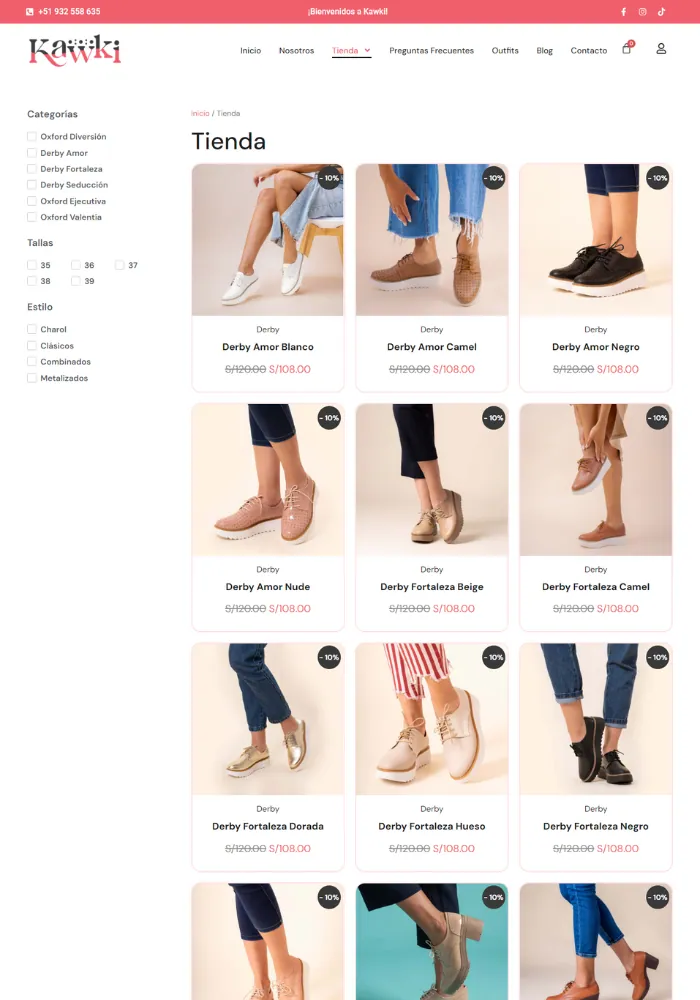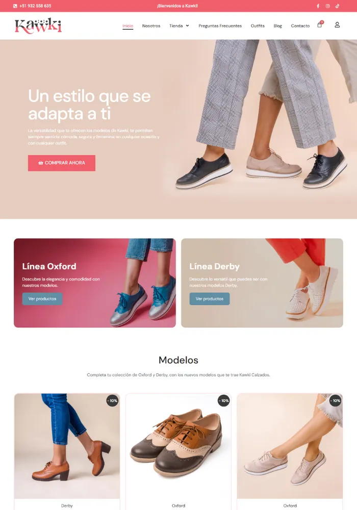 Kawki es una marca peruana de calzado que te ofrece máxima versatilidad en tu vestir, gracias a los diseños y colores únicos, de sus modelos Oxford y Derby; siempre manteniendo, la sutileza y comodidad femenina.