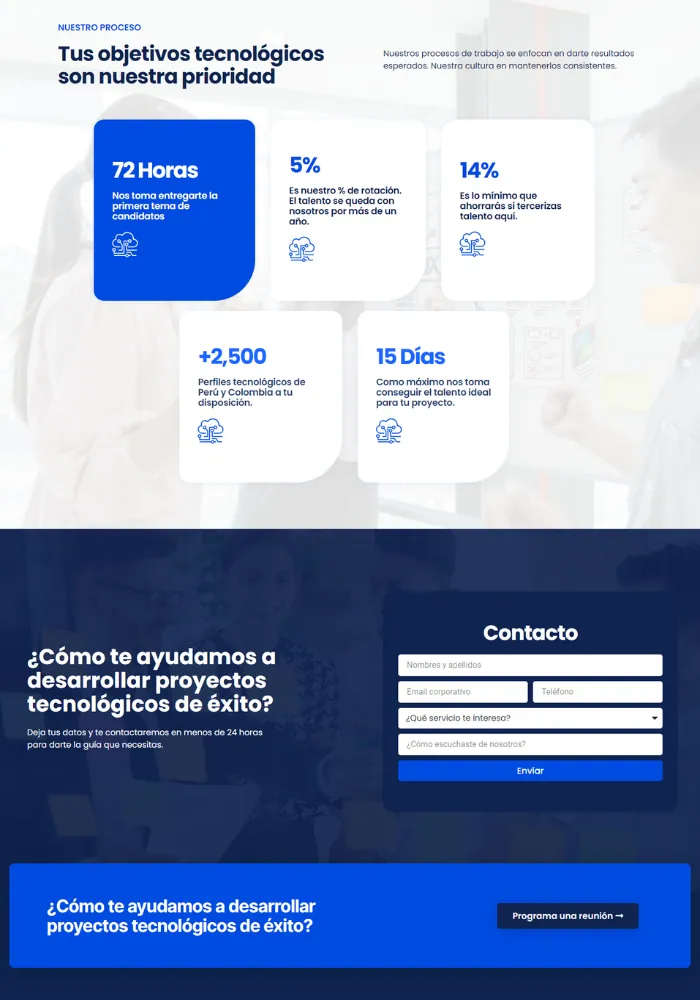Colocamos a nuestro talento tecnológico en el centro. Al enfocarnos en su bienestar y desarrollo, maximizamos su rendimiento para que puedan alcanzar y superar las expectativas, generando los resultados que esperas.