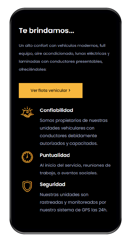 Empresa dedicada al servicio de transporte para ejecutivos, brindándoles atención personalizada, rápida e integral.