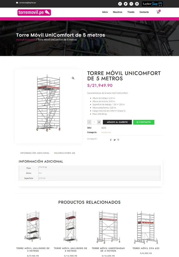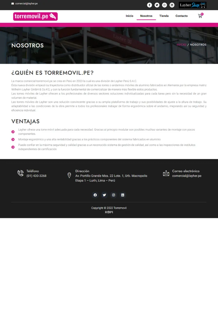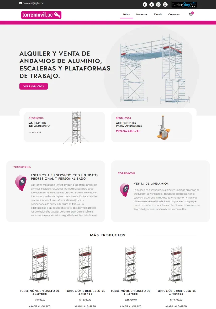 Distribuidor oficial de las torres o andamios móviles de aluminio fabricados en Alemania por la empresa matriz Wilhelm Layher GmbH & Co.KG.